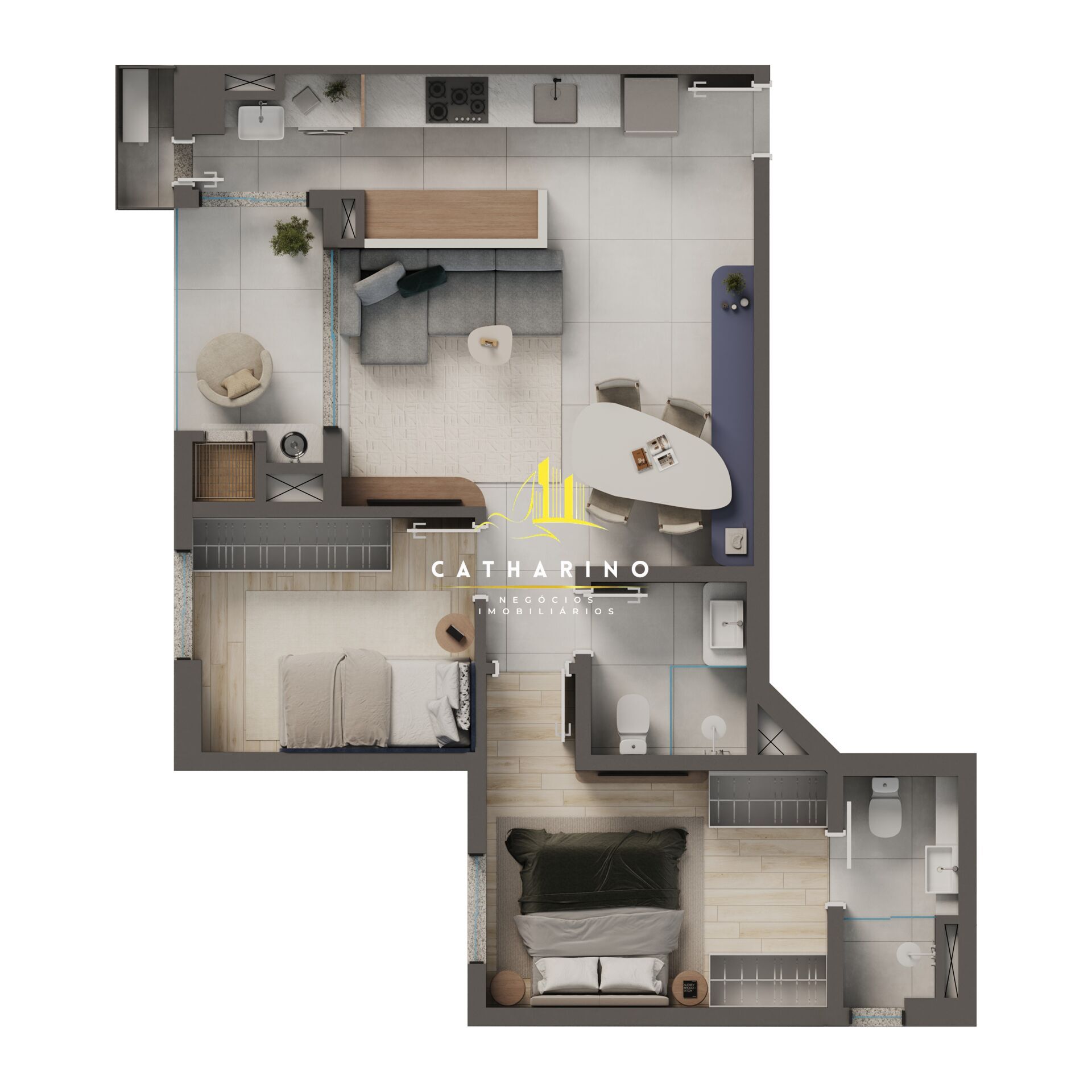 Suíte + 1 com possibilidade de personalização para somente 1 suíte com maior área social.