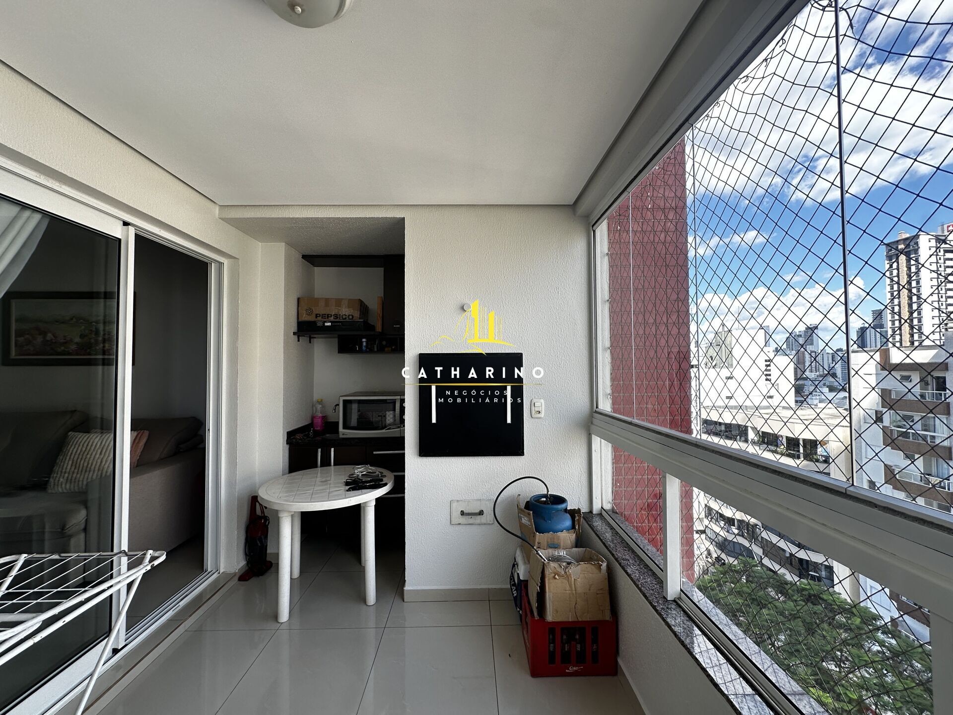 Sacada com churrasqueira fechada em vidros